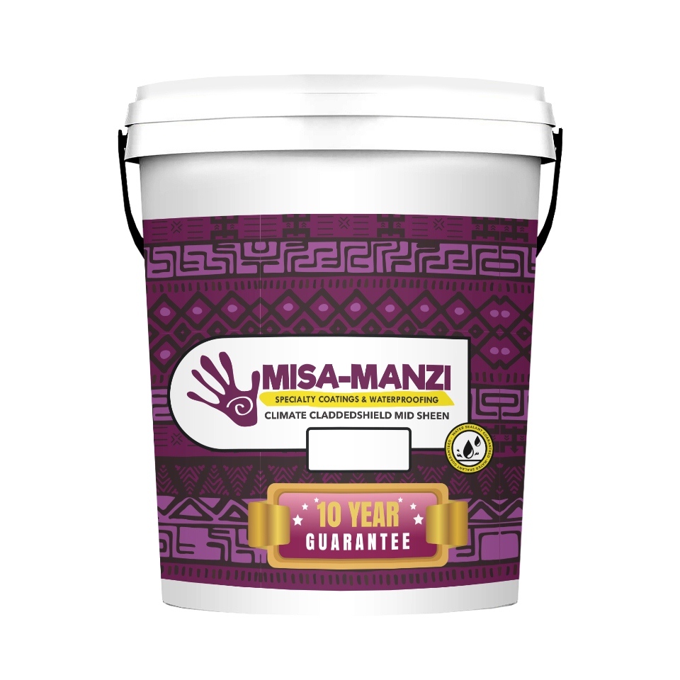 Misa Manzi Climate CladdedShield mid-sheen is fibre reinforced to provide premium quality for exterior walls with mid-sheen finish. It has excellent dirt resistance properties and flexibility. High performance, premium quality fibre reinforced exterior mid-sheen finish for walls with superior dirt resistance and flexibility.